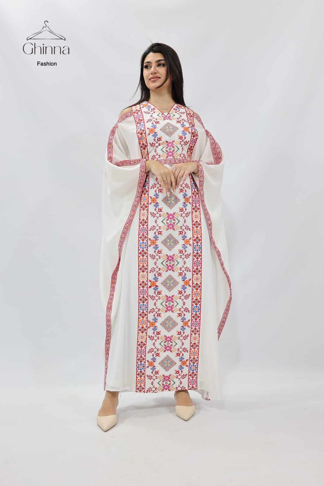 The Sahar Bloom embodies grace and culture with its pure white fabric and delicate pink and red embroidery. Ideal for bridal showers, henna nights, Ramadan iftars, and wedding celebrations, this traditional Middle Eastern dress brings timeless beauty to every special moment.